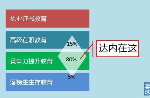 上篇文章中,我們說到了達內(nèi)的4種客戶,但這4種客戶并不是職業(yè)教育的全部。完整的職業(yè)教育市場應該分為這樣4大類業(yè)務:1,面向高考落榜生的生存教育;2,面向大學生的競爭力提高教育;3,面對在職人員的高等技術(shù)教育;4,面向全職業(yè)的證書教育。