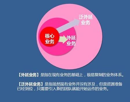 泛外延業(yè)務(wù)是在現(xiàn)有業(yè)務(wù)基礎(chǔ)上沒(méi)有開(kāi)展起來(lái)的業(yè)務(wù)類(lèi)別,但現(xiàn)有資源可以在新的業(yè)務(wù)整合時(shí)發(fā)揮得天獨(dú)厚的優(yōu)勢(shì)。