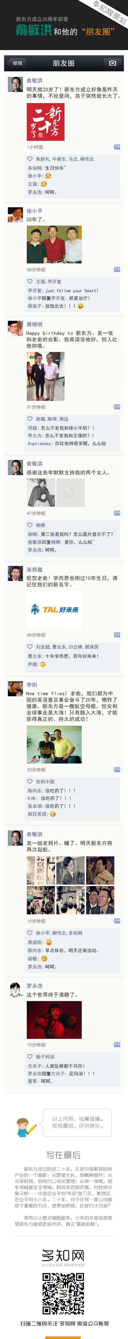 明天是新東方教育集團(tuán)成立20周年,在這個(gè)特殊的時(shí)刻,俞敏洪和他的微信朋友圈里,可能出現(xiàn)哪些有意思的場(chǎng)景呢?