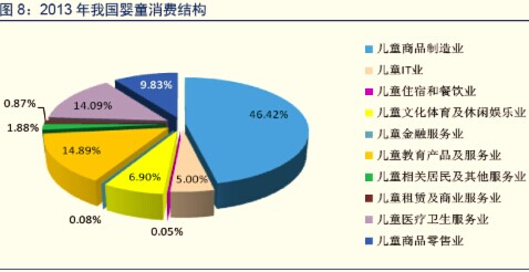 根據(jù)中童研數(shù)據(jù),嬰童商品占整個嬰童產(chǎn)業(yè)的56%(制造/零售分別為46%/10%)、兒童教育產(chǎn)品和服務(wù)業(yè)占比15%、兒童醫(yī)療衛(wèi)生服務(wù)業(yè)占比14%、兒童文化體育及休閑娛樂業(yè)占比7%。