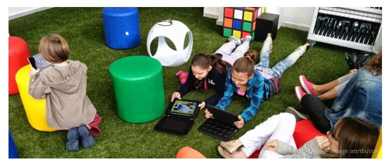 谷歌在圣保羅的私立學(xué)校MaterDei,推出了谷歌學(xué)習(xí)空間(Google Learning Space)。與擺放了整齊的課桌椅的普通教室不同,這個(gè)學(xué)習(xí)空間擺放的是立方形座位、墊子和草皮一樣的地毯,學(xué)生可隨意坐在地板上。這些家具可根據(jù)教室的設(shè)置需要隨意擺放。