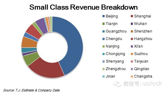 北京和上海作為學(xué)而思最早進(jìn)入的城市,在總體收入中貢獻(xiàn)了超過一半的收入。而別的城市由于進(jìn)入時(shí)間較晚,目前還在擴(kuò)張發(fā)展階段。