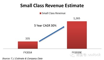 我們假設(shè)北京的75%為各城市的天花板。5年內(nèi)各地城市都能按照北上的速度擴(kuò)張,那么未來(lái)5年好未來(lái)的小班收入的復(fù)合增速能達(dá)到30%。