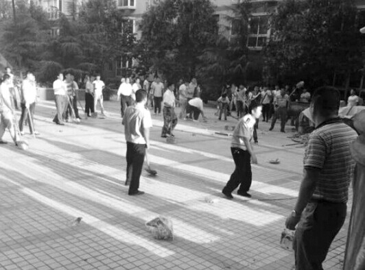 孔令榮稱,到了下午兩點(diǎn)多,王某某帶著老師、學(xué)生及社會人員拿著棍和鐵锨、戴著白手套再次來到天倫花園,恐嚇并威脅孔令榮立即離開小區(qū)。爭執(zhí)之間,孔令榮的八九個親屬趕到,雙方從爭論發(fā)展到動手,一些看熱鬧的本地市民得知有人從濟(jì)南到商丘來打架,也參與進(jìn)來。整個天倫花園瞬間一片混亂,罵聲、鐵锨聲、慘叫聲混成一片。十多名民警趕到現(xiàn)場也沒能阻止打斗,后又增派警力及防暴警察,才把事件平息下來。
