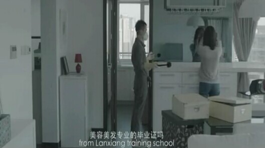 2011年11月,電影《失戀33天》第84分鐘,王小賤要給黃小仙剪劉海,黃小仙皺著眉頭問(wèn):“你有藍(lán)翔技校的美容美發(fā)畢業(yè)證嗎?”