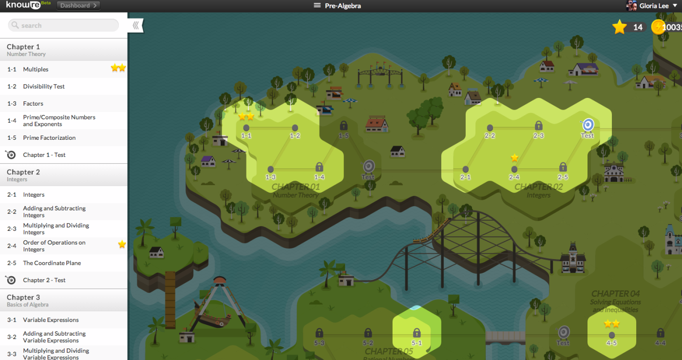 KnowRe比較引人注目的功能是類似游戲的知識(shí)地圖,像每一款角色扮演游戲一樣,學(xué)生必須要通過(guò)做練習(xí)完成每個(gè)關(guān)卡,來(lái)賺取硬幣來(lái)解鎖更高水平的關(guān)卡。