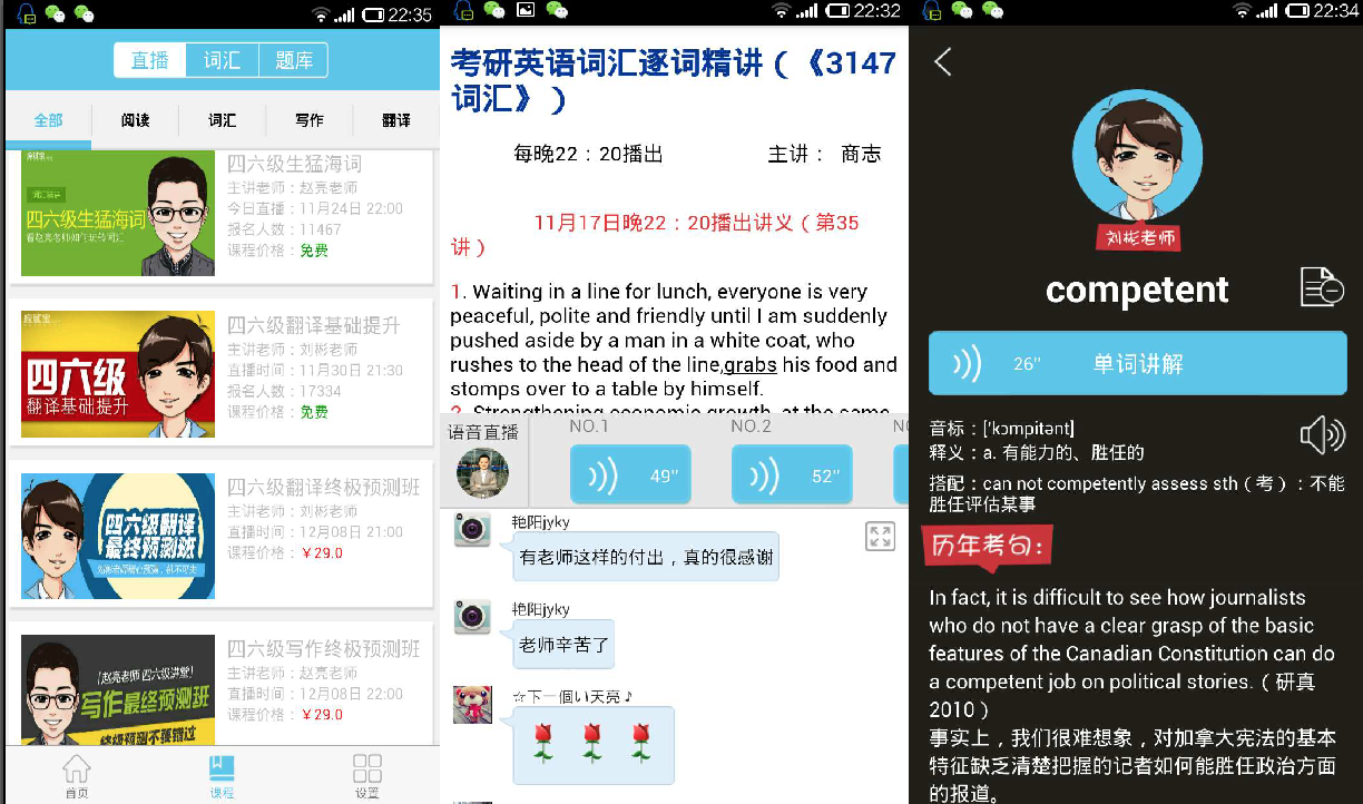 劉彬和他的團隊最開始對于音頻產品并沒有抱有太大的期望,他們在原來積累起來的用戶 QQ 群里小范圍地測試了這樣一種課堂形式。老師在群里發(fā)一張簡單的講義,然后通過語音功能,為學生講解四六級過程中所遇到的難點。非常意外的是,這種形式得到了學生們的良好反饋,越來越多的人開始喜歡這樣一種類似微信語音交流的方式。因為這保證了即使在極為簡陋的網絡環(huán)境下,學生仍然能夠獲得這些課程培訓。