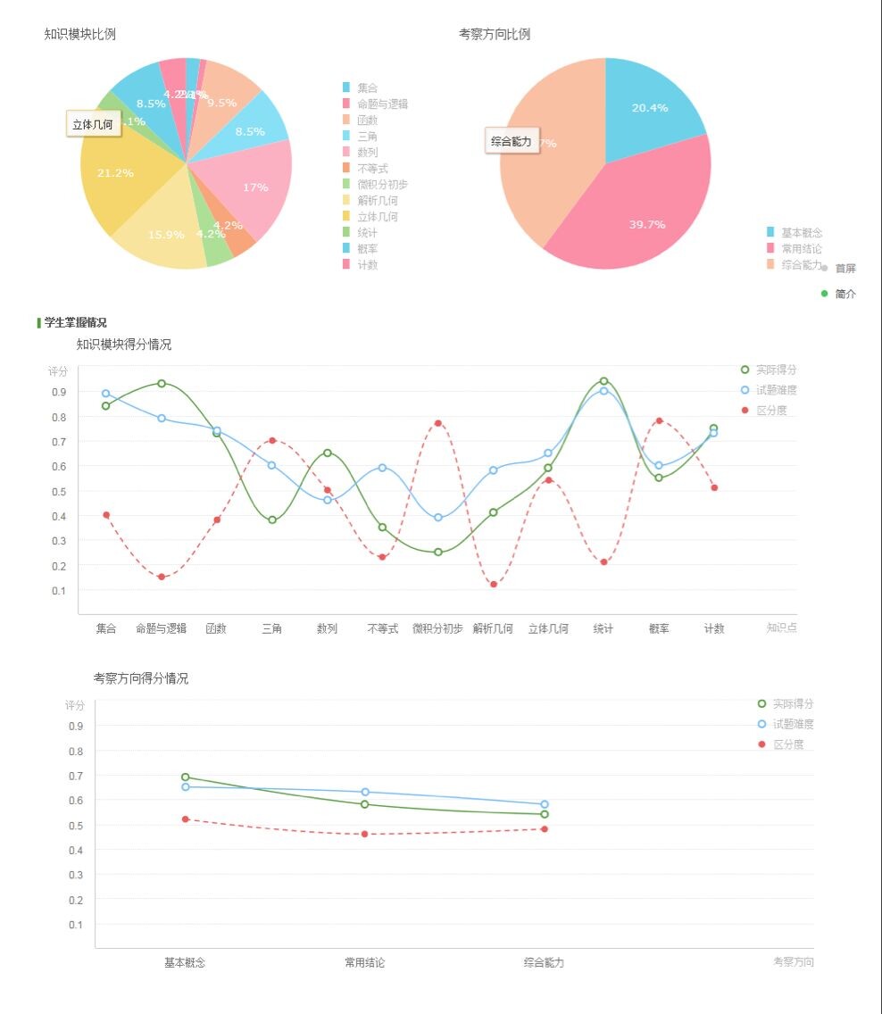 通過快樂學(xué),老師可以調(diào)用任意知識點的題目,備課、布置作業(yè)、出題,學(xué)生交作業(yè)后,會生成分析報告,包括錯誤率、弱項、知識模塊得分、綜合能力等維度,將學(xué)生“分類”,老師再進行針對性的講解。