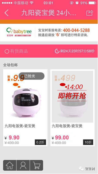 近日,母嬰服務(wù)平臺寶寶樹聯(lián)合九陽在寶寶樹旗下美囤媽媽電商平臺嘗試眾籌模式,第一次眾籌商品為瓷內(nèi)膽電飯鍋,定價9.9元。據(jù)官方稱,兩天時間后,訂單量超過5000單。