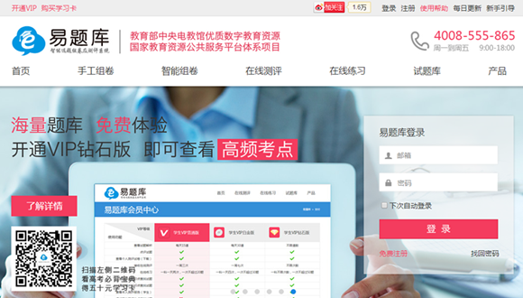 易題庫(kù)2014年3月上線,以老師作為關(guān)注的重點(diǎn),幫助中學(xué)教育領(lǐng)域的教師快速完成組卷和測(cè)評(píng)等工作。截止到2014年12月,易題庫(kù)已經(jīng)擁有數(shù)十萬(wàn)名教師用戶。