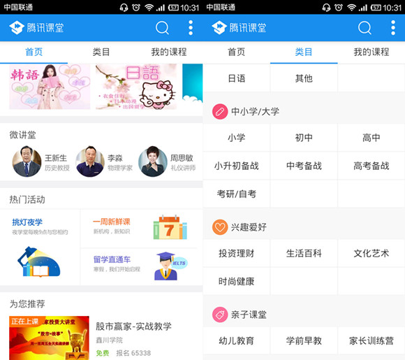 目前,騰訊課堂上除了雅思、托福等考試類培訓(xùn)課程外,也有興趣愛好、親子課堂等興趣類課程。用戶可以通過直接搜索、選擇對(duì)應(yīng)類目等方式。