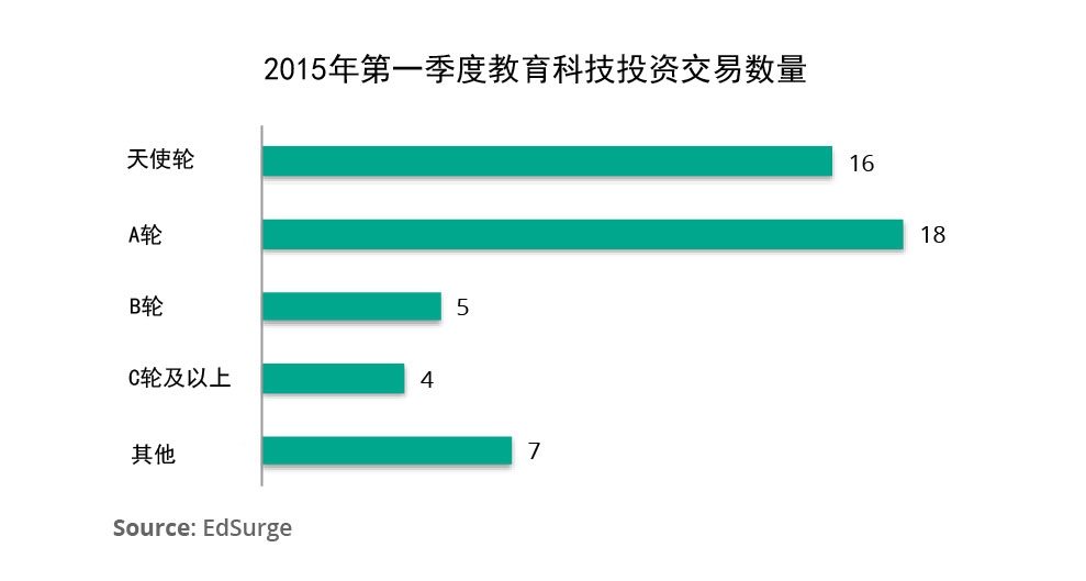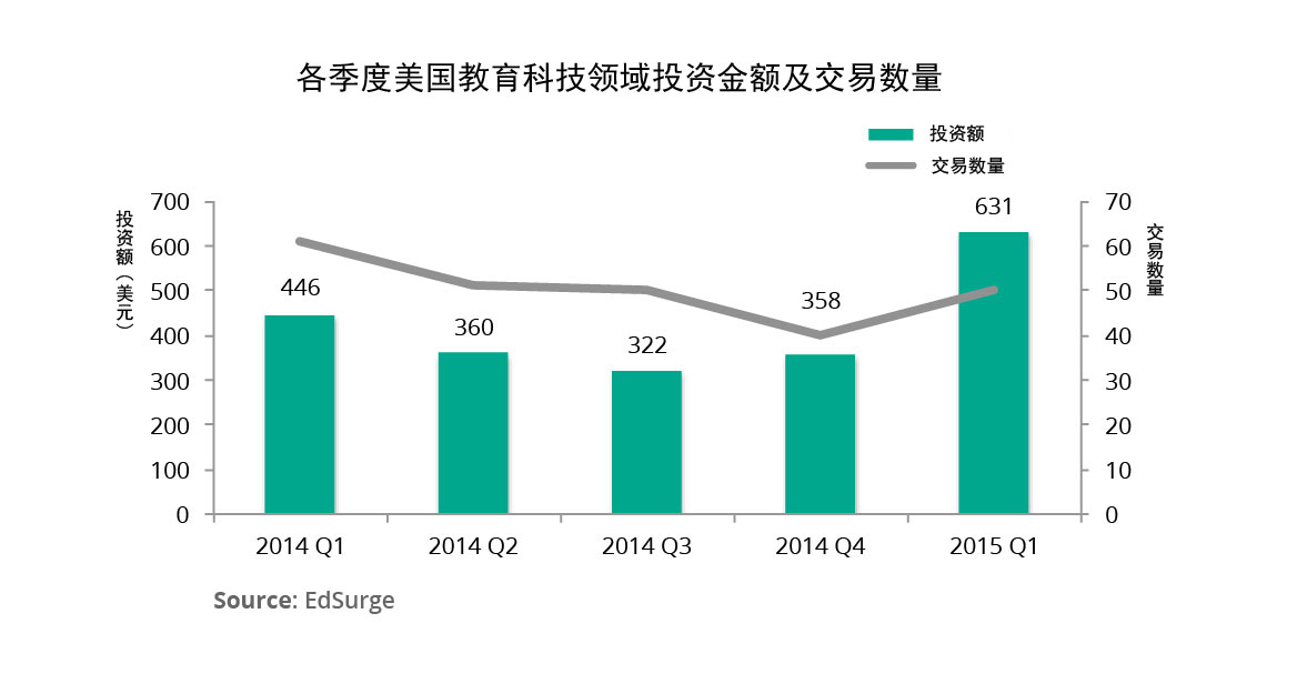 這兩家教育科技公司都在K-12之外。事實上,K-12領域的投資金額在第一季度較2014年同期減少了60%。
