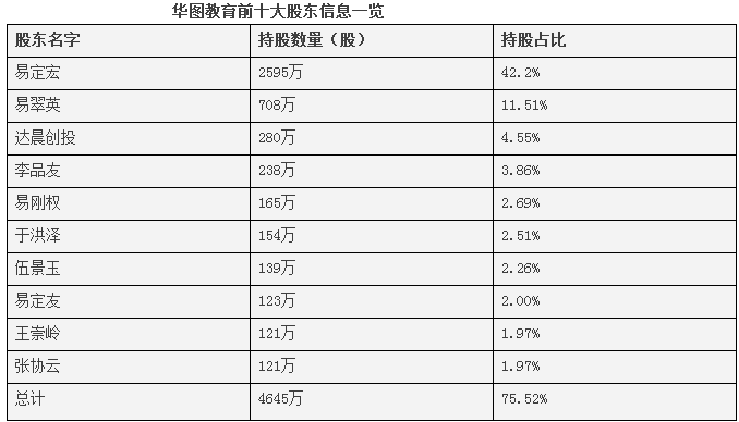 華圖教育的大股東名單背后,透露著培訓行業(yè)典型的草莽時代的印記——個人英雄主義、家族主義、兄弟情義。所謂的個人英雄主義,毫無疑問是指易定宏,盡管后來股份一再被稀釋,現在易定宏也仍然高達42%。如果加上易翠英(易定宏之姐)、伍景玉(易定宏之妻),則整個易氏家族的持股份額超過56%。當然,無論是對李品友這樣出生入死的兄弟,還是于洪澤這樣半路殺出的合伙人,易定宏至少還算是義氣相投吧。
