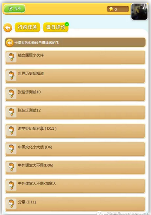 游學(xué)APP在設(shè)計(jì)時(shí),根據(jù)每個(gè)孩子的游學(xué)安排,從出團(tuán)前到在境外期間,設(shè)計(jì)了一系列游學(xué)任務(wù)。游學(xué)任務(wù)涵蓋的范圍包括行前的安全準(zhǔn)備、目的國(guó)文化知識(shí)學(xué)習(xí)、寄宿家庭交流、游學(xué)感觸與思考等,任務(wù)的種類也是多種多樣,包括結(jié)交國(guó)際小伙伴、世界歷史我知道、中國(guó)文化小大使、中外課堂大不同等等。