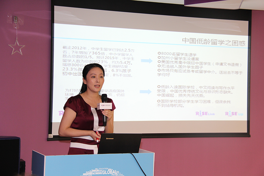 對(duì)于為何推出Rise up在線美國(guó)初中課程?“現(xiàn)在低齡留學(xué)趨勢(shì)明顯,出國(guó)讀高中的學(xué)生增長(zhǎng)速度非??欤押⒆犹崆俺鰢?guó)的時(shí)間提前。而出國(guó)留學(xué),語(yǔ)言是第一關(guān)。”Sally在發(fā)布會(huì)現(xiàn)場(chǎng)這樣說道。(多知網(wǎng) 車錦文)