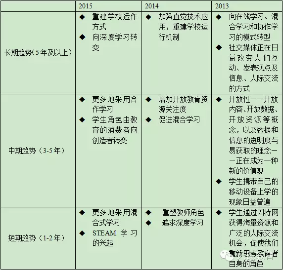2013-2015年《地平線報(bào)告》中K-12領(lǐng)域教育技術(shù)的6大重要進(jìn)展