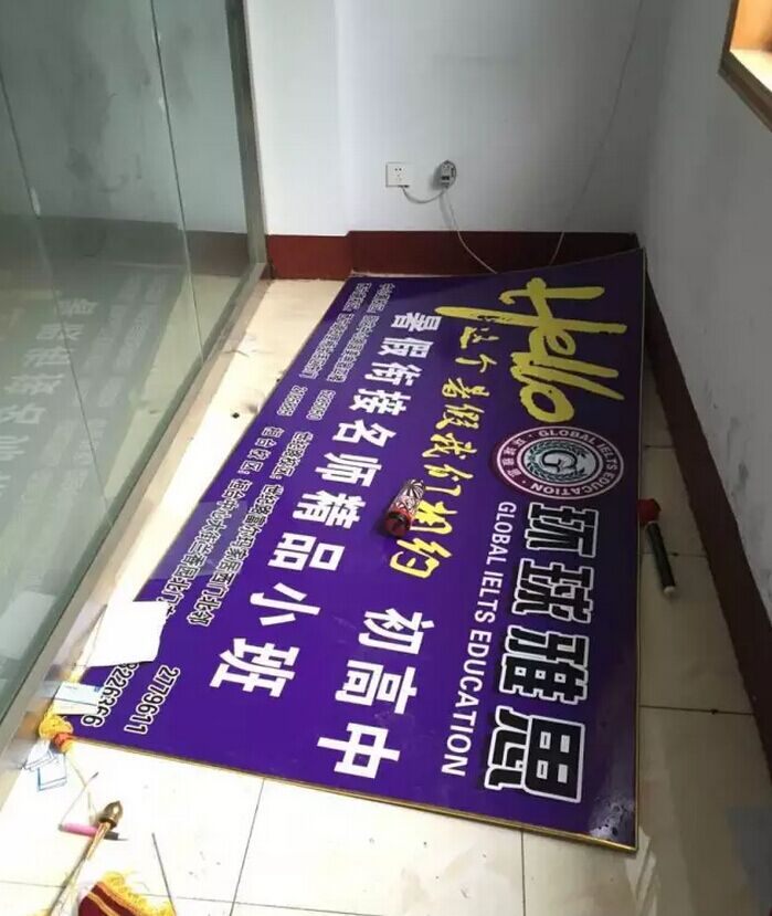 圖為跑路“環(huán)球雅思”學(xué)校廣告牌