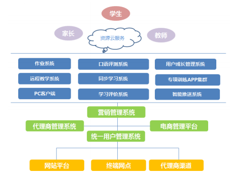 同步資源學(xué)習(xí)系統(tǒng)是為學(xué)生配備同步配套教學(xué)資源,打通學(xué)生與教師、學(xué)生與家長、教師與家長之間的互動(dòng)溝通。同步教育資源學(xué)習(xí)系統(tǒng)架構(gòu)圖如下: