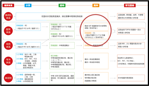 先來(lái)看看好未來(lái)樂(lè)加樂(lè)英語(yǔ)的培訓(xùn)體系——請(qǐng)注意紅圈部分——這不就是留學(xué)英語(yǔ)培訓(xùn)機(jī)構(gòu)做的事情么?——為什么沒(méi)有人注意到?——好未來(lái)剛進(jìn)入K-12培優(yōu)市場(chǎng)的時(shí)候有競(jìng)爭(zhēng)對(duì)手注意到了么?等大家都注意到的時(shí)候,是不是已經(jīng)沒(méi)法阻止了呢?所以我的感覺(jué)是,好未來(lái)希望悄悄地布局,等這塊做大了別的留學(xué)機(jī)構(gòu)已經(jīng)沒(méi)法阻止的時(shí)候,才向市場(chǎng)公開(kāi)。