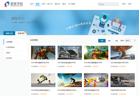 多知網(wǎng)登陸酷客學(xué)院網(wǎng)站發(fā)現(xiàn),目前,酷客學(xué)院的課程只有CG影視制作、UI設(shè)計(jì)、辦公軟件三部分課程。這可能是為了與其他IT職業(yè)培訓(xùn)網(wǎng)站形成差異化。
