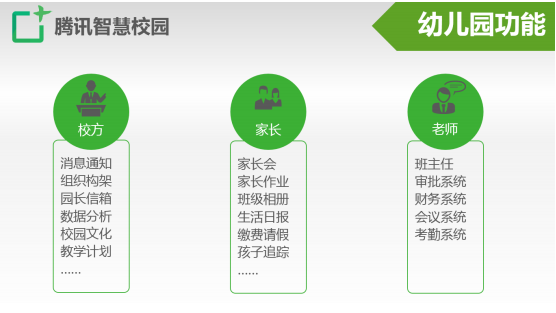 幼兒園版本有30項(xiàng)功能,側(cè)重家校互動(dòng)、公告、追蹤