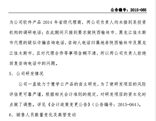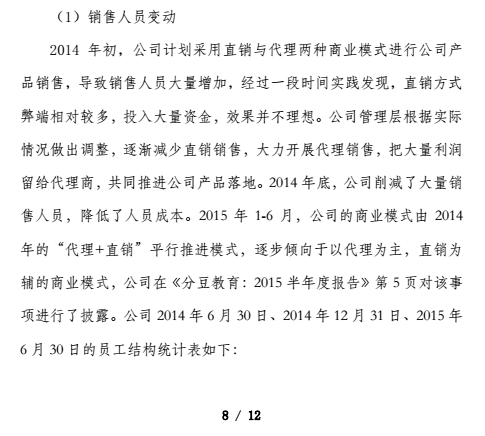 多知網(wǎng)11月6日消息,今日,分豆教育發(fā)布《澄清公告》,就前段時間拙樸新三板發(fā)表的質(zhì)疑分豆的文章《八問分豆教育》做出回應(yīng)。文章中質(zhì)疑分豆教育的八個問題分別是:1.2014年到底多少凈利潤?2.相信哪一位會計(jì)師?3.到底是銷售內(nèi)容還是銷售軟件?4.誰是真正的客戶?5.都研發(fā)了些什么?6.員工數(shù)量為何波動大?7.花天價在買什么?8.何必再融資?公告內(nèi)容對上述八個問題一一做出了回應(yīng)。
