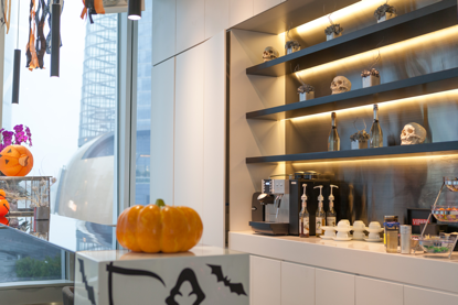 會(huì)客區(qū)水吧,咖啡機(jī)、飲水機(jī)等設(shè)施一應(yīng)俱全。