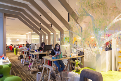 VIPABC員工休息區(qū),最近的這個(gè)區(qū)域可以供員工休息放松,遠(yuǎn)處的桌子可以用來(lái)開(kāi)小型會(huì)議或者討論(如下圖)。