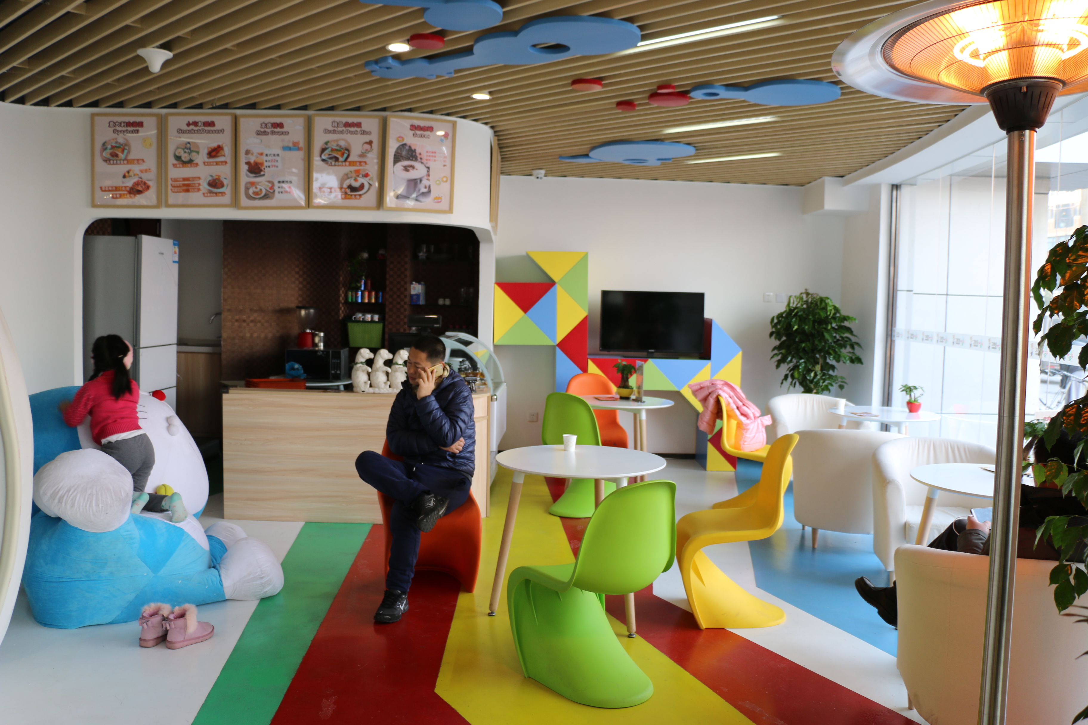 圖為一層右側(cè)是家長休息區(qū)和茶水餐飲區(qū)。