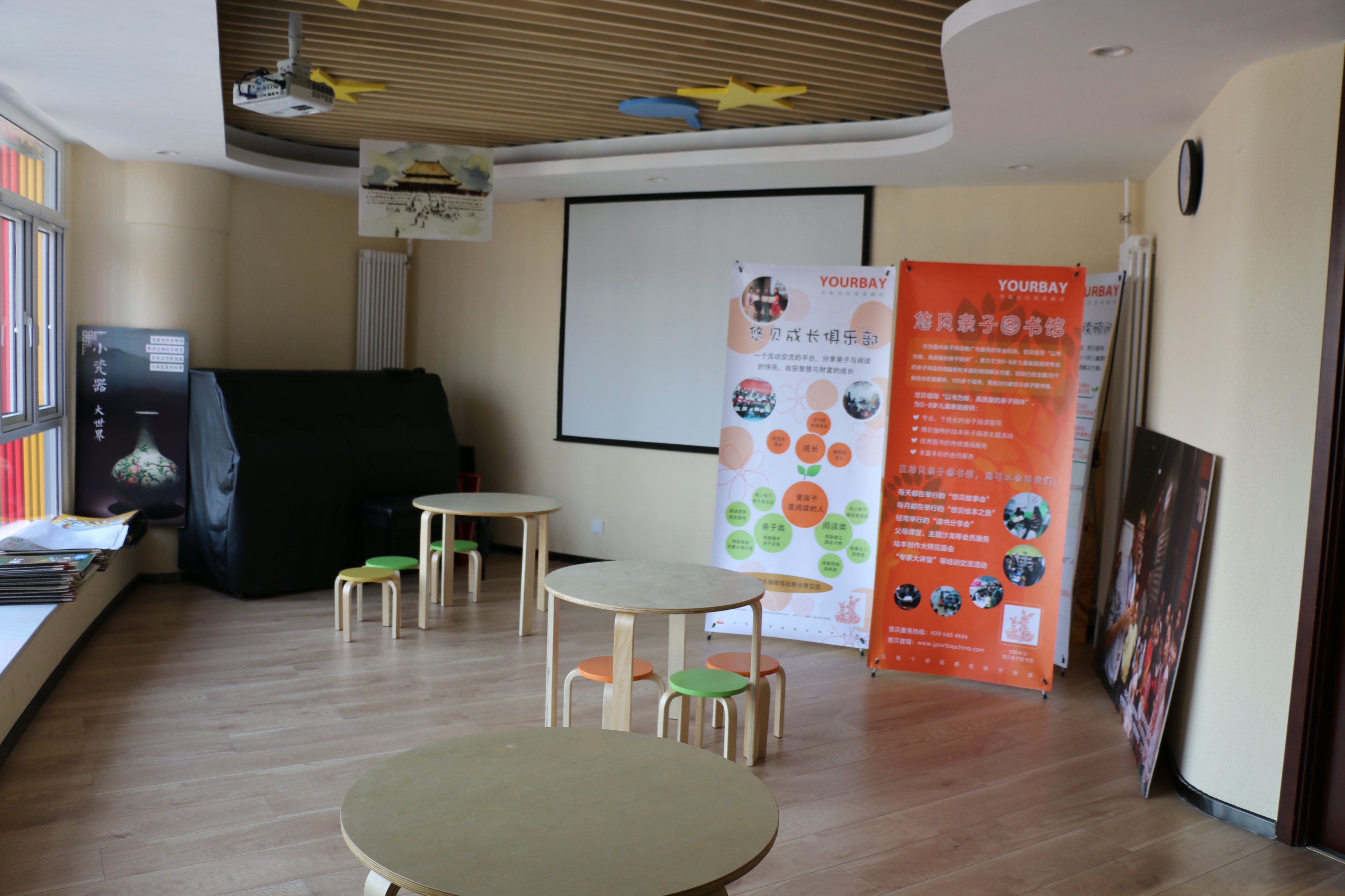 該中心的一層分為三個功能區(qū),中間是前臺,左側(cè)是學(xué)員的游戲活動區(qū)域和繪本閱讀區(qū),右側(cè)是家長休息區(qū)和茶水餐飲區(qū)。
