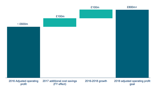 預(yù)計(jì)到2016年中期完成大部分計(jì)劃,實(shí)施成本約為3.2億英鎊,預(yù)計(jì)生成年度儲蓄約3.5億英鎊,其中,約2.5億英鎊儲蓄在2016年生成,1億英鎊在2017年生成。