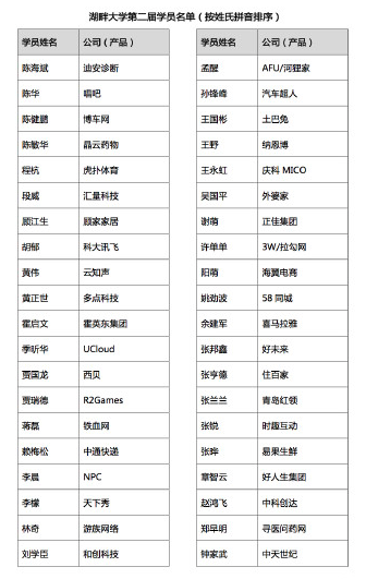 附湖畔大學(xué)第二期學(xué)員名單: