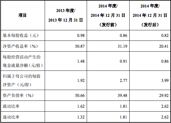 發(fā)行前后主要財(cái)務(wù)指標(biāo)變化如下: