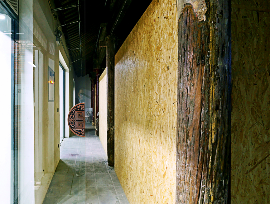 因為剛剛搬來不久,整個辦公區(qū)還在完善當(dāng)中,新的環(huán)保建材與古老的木樁子,沒有了卯榫相連,也能以新的方式聯(lián)結(jié),融合。