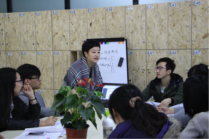 一層的部門主要為人事、市場、運營、課程顧問、教學(xué)服務(wù)。幾個靈活會議區(qū)都坐滿了人,有人在講課,也有人在討論。