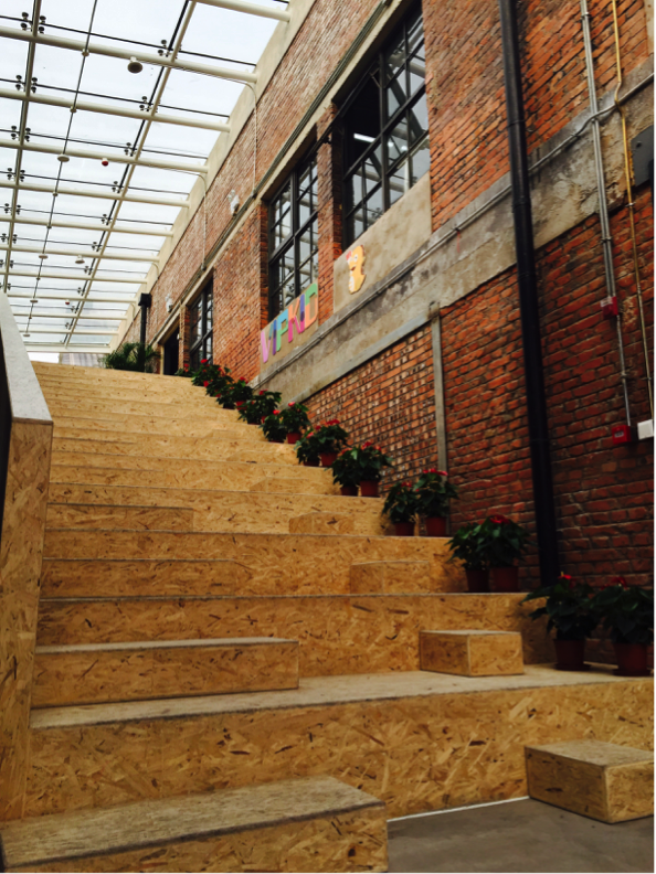 VIPKID的新辦公樓有2000余平米的工作區(qū)域,沿著這條臺階,就可以到辦公區(qū)的第二層,臺階材質(zhì)主要為低碳的環(huán)保材料。