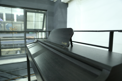 順著陽臺走進(jìn)二樓室內(nèi),一架鋼琴立在一旁,一些教師會在互動過程中使用它。
