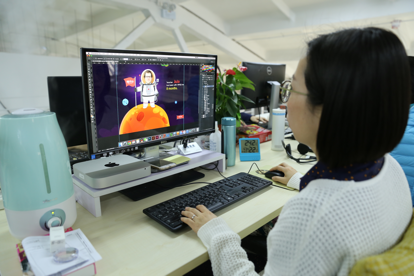 公司會為運營團(tuán)隊統(tǒng)一制作微信頭像,穿著文化衫的職工可以選擇與喜歡的卡通玩偶一起拍照。