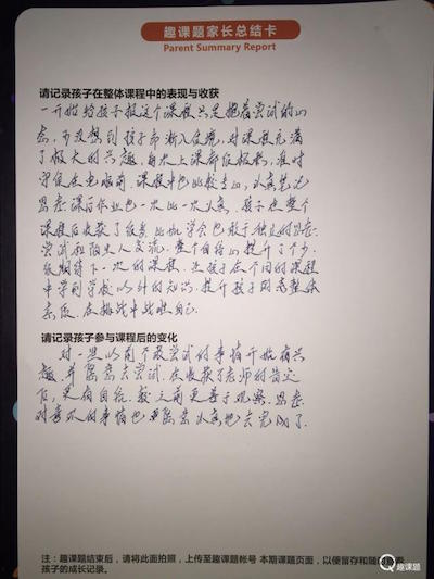 第三點需求是,是張華預(yù)先設(shè)置的,但沒想到效果超出預(yù)期 。在五次課程中,其中一次是畢業(yè)于哈佛的外教直播上課。家長覺得,外教用英文講,有中文PPT做輔助,孩子可以跟得上,未來孩子要留學(xué),可以提前體驗國外的項目式學(xué)習(xí)。