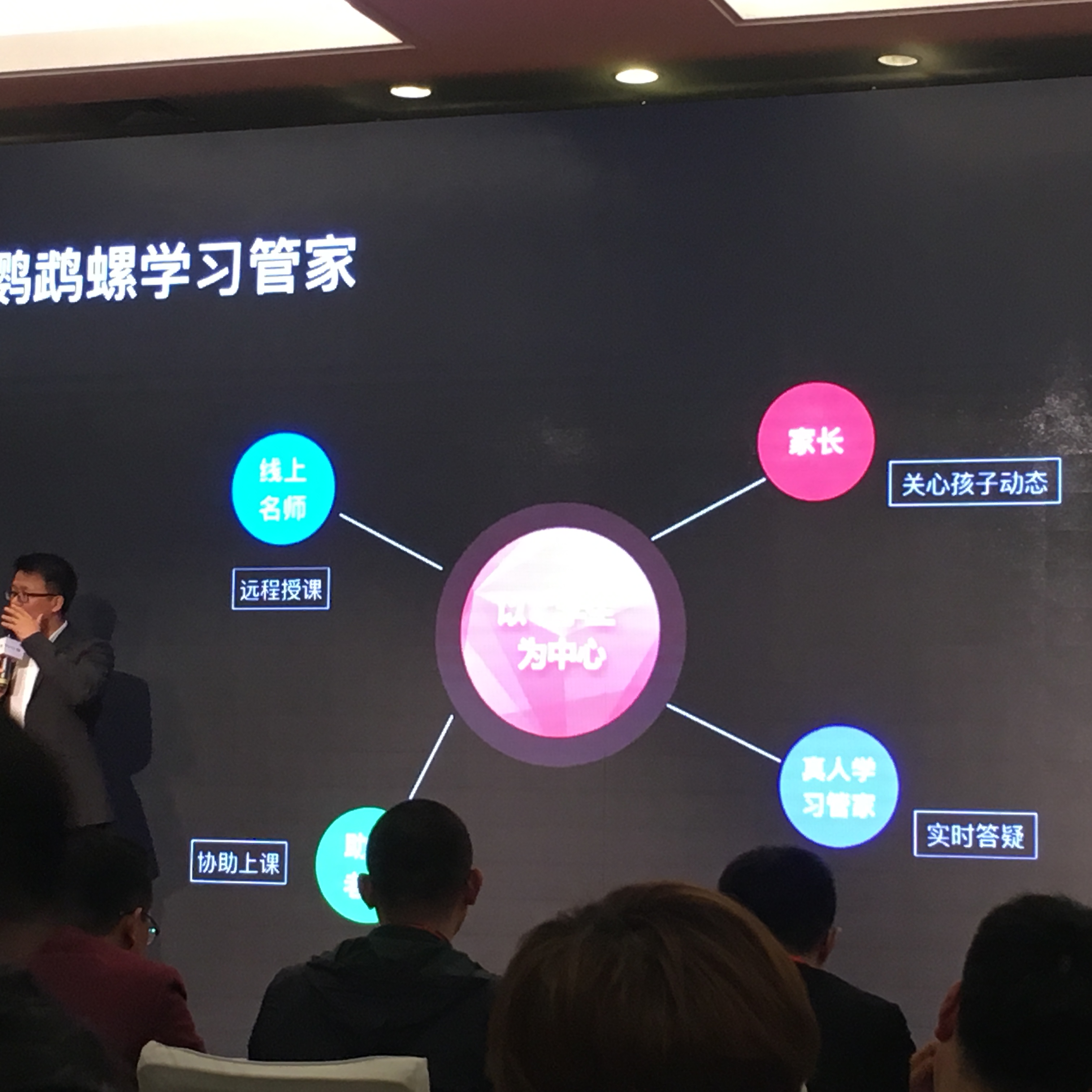 在今天的發(fā)布會上,鸚鵡螺發(fā)布了學習管家APP。學習管家包括四個功能:線上名師遠程授課,助教協(xié)助上課,真人實時答疑,家長關心孩子動態(tài)。