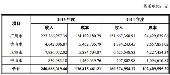 報告期內(nèi),公司主營業(yè)務(wù)收入主要集中在廣州市及周邊城市,主要原因是公司收入規(guī)模還較小,現(xiàn)階段集中在公司所在地的附近區(qū)域開展業(yè)務(wù)成本比較小,隨著業(yè)務(wù)的進(jìn)一步擴(kuò)大,公司業(yè)務(wù)收入的區(qū)域來源會進(jìn)一步分散。明師教育分地區(qū)列示的營收如下表所示: