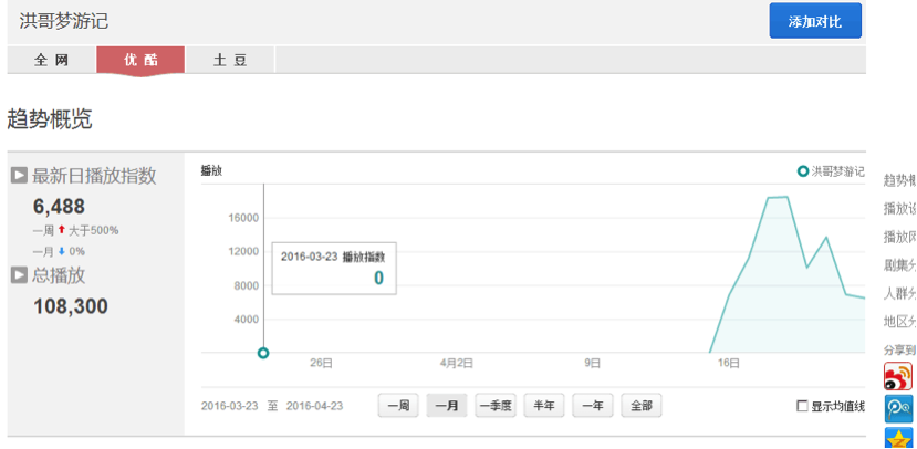 再來看一下“洪哥夢游記”在優(yōu)酷視頻的播放情況,見下圖。