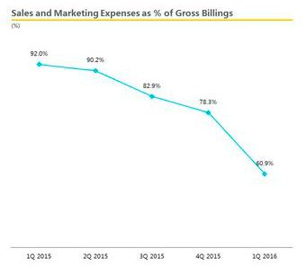 這就是51Talk最新的2016年Q1財(cái)務(wù)報(bào)表反映出的公司收入和開支詳情,在現(xiàn)階段,由于客單價(jià)無法覆蓋單客成本費(fèi)用(尤其是昂貴的獲客成本),處于賠錢做買賣階段。那么51Talk是否可以通過提高收入降低開支從而實(shí)現(xiàn)盈利?