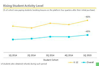 1、課程失效率呈現(xiàn)逐年上升的趨勢,2013、2014、2015年的課程失效率分別是7%、10%、15%,雖然課程失效率上升在短期內(nèi)提高公司利潤率有所幫助,但是長期來看,對提高用戶生命周期、公司品牌口碑均很不利,目前不清楚為什么課程失效率逐年上升以及未來走勢;