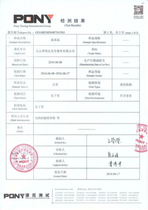 圖為pony集團的檢測報告