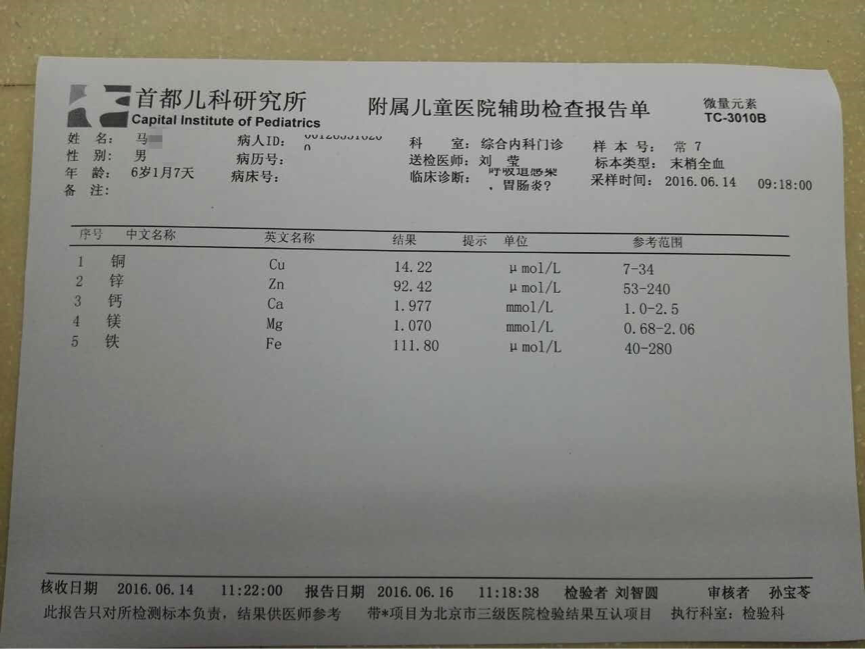 圖為一位學員的微量元素檢測報告
