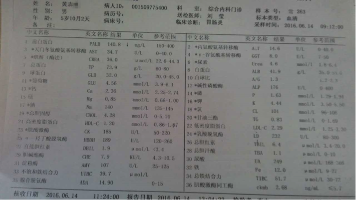 圖為一位學員的血常規(guī)檢測報告