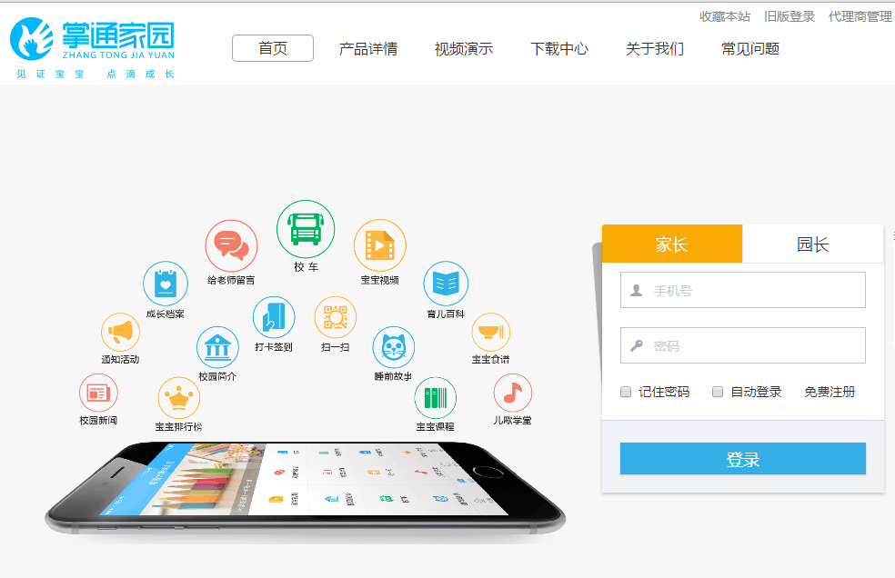 掌通家園前身為“寶寶在線”。2014年,寶寶在線升級為掌通家園,是神州鷹打造的教育輔助平臺。通過技術(shù)融入幼兒園監(jiān)控系統(tǒng)中,形成校園安全監(jiān)控管理;并與移動互聯(lián)網(wǎng)、云技術(shù)等高新技術(shù)結(jié)合,搭建家庭與校方互動的共同教育平臺。