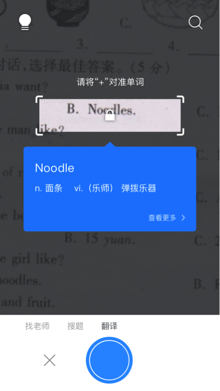 此外,新版將主要功能如拍照搜題、老師答疑和單詞翻譯統(tǒng)一整合到拍照搜題一個(gè)功能鍵位,用戶可直接通過左右滑動(dòng)的方式進(jìn)行切換。