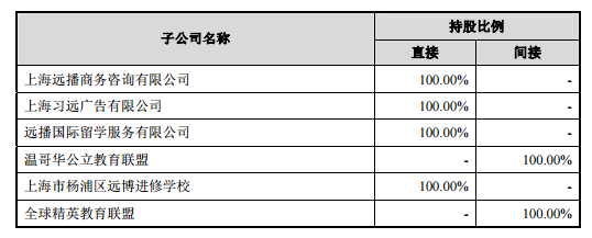公告顯示,截至 2015 年 12 月 31 日,遠播教育納入合并報表范圍的子公司有 6 家: